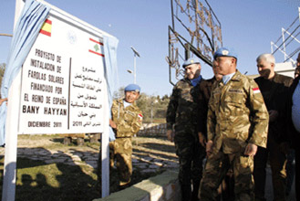 مصابيح شمسية من إسبانيا لبلدة بني حيان: سلم قائد القطاع الشرقي في اليونيفيل الجنرال الإسباني فرناندو غوتيريث دي اوتاثو اربعة عشر مصباح انارة تعمل على الطاقة الشمسية، الى بلدة بني حيان، بكلفة بلغت 24 الف دولار وبتمويل من المملكة الإسبانية، وذلك في احتفال اقيم ف